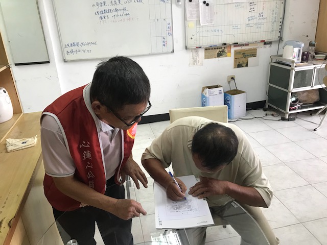 本會審查組及新北區辦事處主任陳忠裕,及發放組志工等前往訪視慰問查證屬實符合本會補助要件准予補助喪葬棺木乙具、骨灰罈乙個之補助。