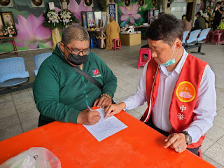 本會審查組及新北區辦事處主任陳忠裕,及發放組志工等前往訪視慰問查證屬實符合本會補助要件准予補助喪葬棺木乙具、骨灰罈乙個之補助。